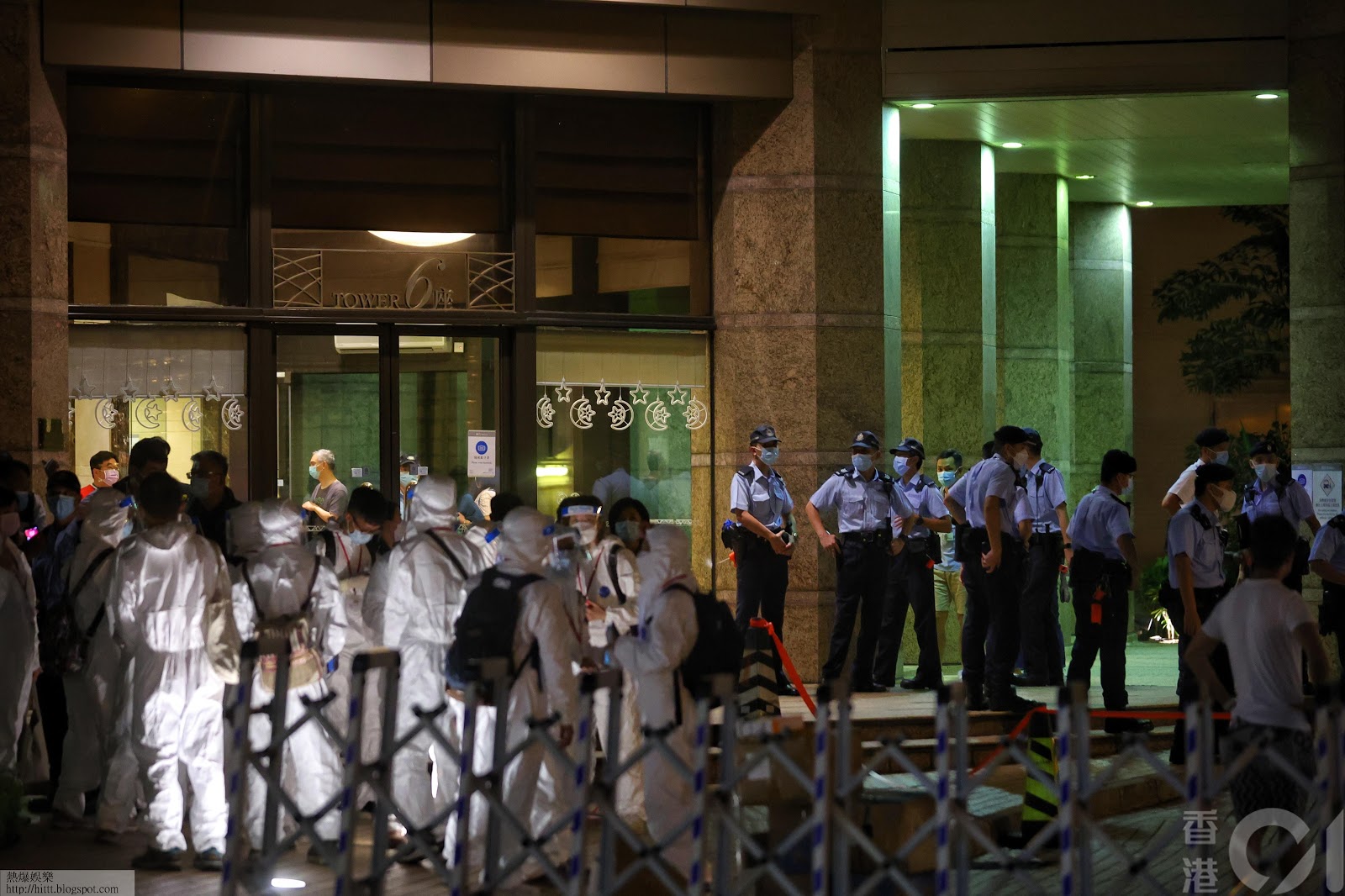 5月23日晚上8時,政府指維港灣第6座一名菲傭帶變種病毒,大廈所有住戶要禁足接受強制檢測。(羅君豪攝)