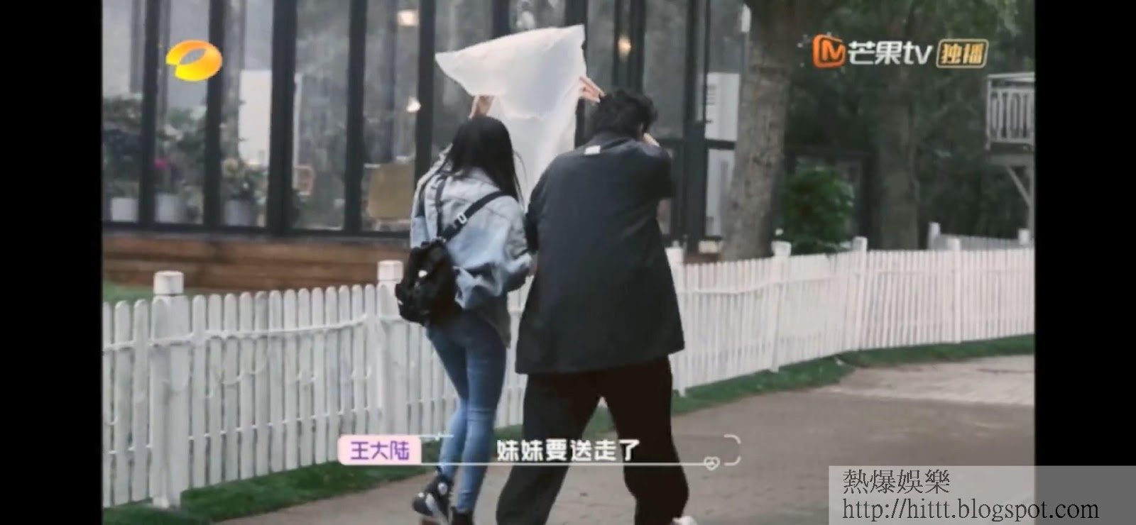 王大陸在節目中為蔡卓宜擋雨護航。(微博圖片)