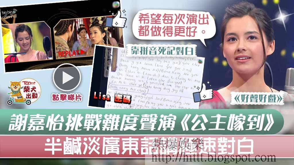 由多位藝員挑戰配音環節為主題的《好聲好戲》,節目來到第二周,換上黃翠如、鄧智堅、張振朗及港姐謝嘉怡 (Lisa)上場挑戰。其中不太懂中文的謝嘉怡,雖在兩晚配音環節經常被指甩嘴,原來她靠死背英文拼音上陣,以努力終打動評判。