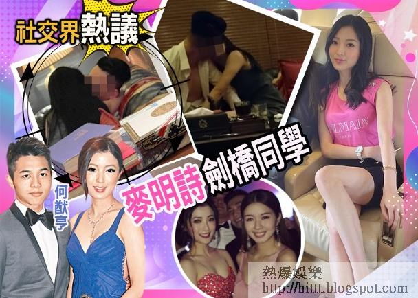 賭王四房兒子何猷亨的前度、下嫁哈佛鋼琴神童的社交界名媛陳可欣(Sabrina),樣靚學歷高兼出身富裕,畢業後從事金融界,並與前港姐冠軍麥明詩是劍橋大學同學,而她跟港姐們似乎特別投契,好像應屆亞軍陳楨怡、黃婉恩和伍樂怡等都是她的閨蜜。近日網上爆出一批聲稱是Sabrina與一名四眼男激咀照,引起社交界哄動。
