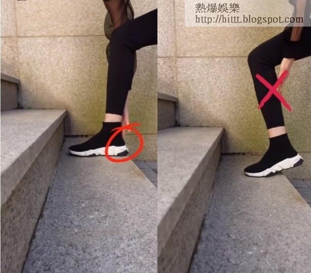 Step 2:走上樓梯時要注意把力量集中在腳後踭,如果是由前腳掌帶動腿的話,用的只是小腿的力量,訓練小腿的肌肉,有機會練成肌肉腿。所以這一點非常重要,謹記要用後腳踭發力。