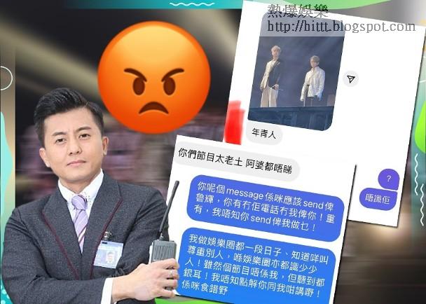 他更忍不住爆粗表示:「你可以話我演技差、口才唔好或者樣衰都得,但你唔可以抹煞一個節目成功與否,每樣嘢都有人鍾意有人唔鍾意,你唔鍾意想叫人認同你?個節目我都有份做,你想我俾(畀)咩反應你,成個節目嘅人都係我朋友!個個都識十幾年!what the Fxxx !」