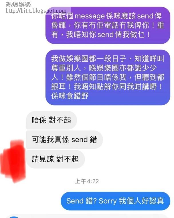 他留言:「Sorry 我真係瞓唔著(着)!我想問吓識得我嘅朋友,有冇人可以答到我,呢個人究竟正職係做乜,友台工作人員、演唱會宣傳人員、藝人經理人、定保母???」又指昨日是母親節不想生氣,但被該網友辣着:「但呢位先生唔知點解係都要撩我,我真係忍唔住,你唔delete啲對話 我都冇咁嬲,你delete即係你覺得唔啱數,最憎啲人講過嘅嘢唔算數,答咗你咁耐,最後話可能send錯,咁我唯(惟)有講出黎(嚟)等大家評吓理,如果我有錯,我可以公開道歉。」
