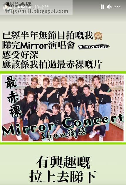 小占在片段中一開始表示自己每次看完演唱會都想飲杯酒,談及MIRROR演唱會,他有幸坐第一排,轉身看見一片人海,感覺如自己在開騷又正又羨慕。令他感受最深的是MIRROR成團初期,他說︰「我曾經有一刻好唔鍾意同好憎MIRROR同ERROR,佢哋真係有好多節目拍。公司未必成日用到自己人,再加上佢哋咁紅咁多人,覺得死啦,我一定冇節目拍,嗰吓好唔鍾意MIRROR同ERROR。」之後他更謂︰「由我開頭好憎、唔鍾意佢哋搶晒啲job,到而家唔係妒忌係羨慕,呢一行好需要時機,佢哋由冇人識到而家好多人追,我羨慕佢哋有自己嘅騷。」更坦言自己已成為鏡粉。
