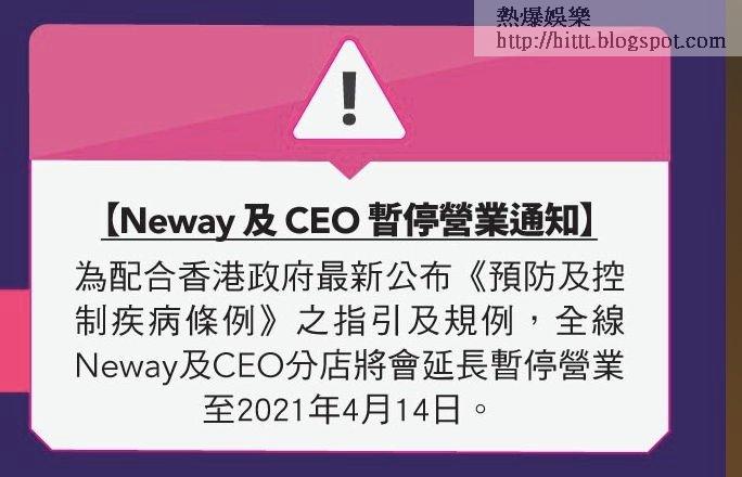 Neway官網顯示:全線Neway及CEO分店將暫停營業至4月14日