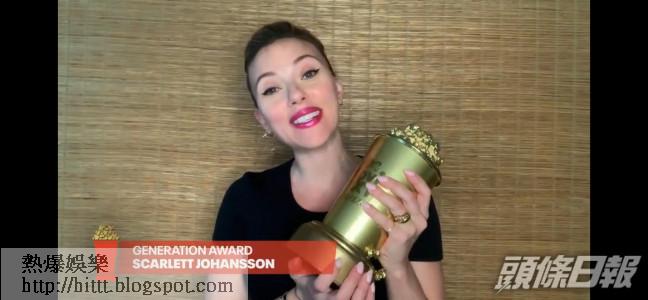 至於電影方面,「黑寡婦」史嘉莉祖安遜(Scarlett Johansson)獲頒「時代獎」,她透過視像發表得獎感言時,感謝大家的支持,讓她可幸運地在事業上打拚;其間,史嘉莉更被諧星丈夫Colin Jost潑綠色鬼口水,令她嬲到當場爆粗!Colin稱是MTV頒獎禮,所以要淋鬼口水,史嘉莉則糾正是Nickelodeon頻道舉辦的《Kids' Choice頒獎禮》才有鬼口水,場面搞笑!