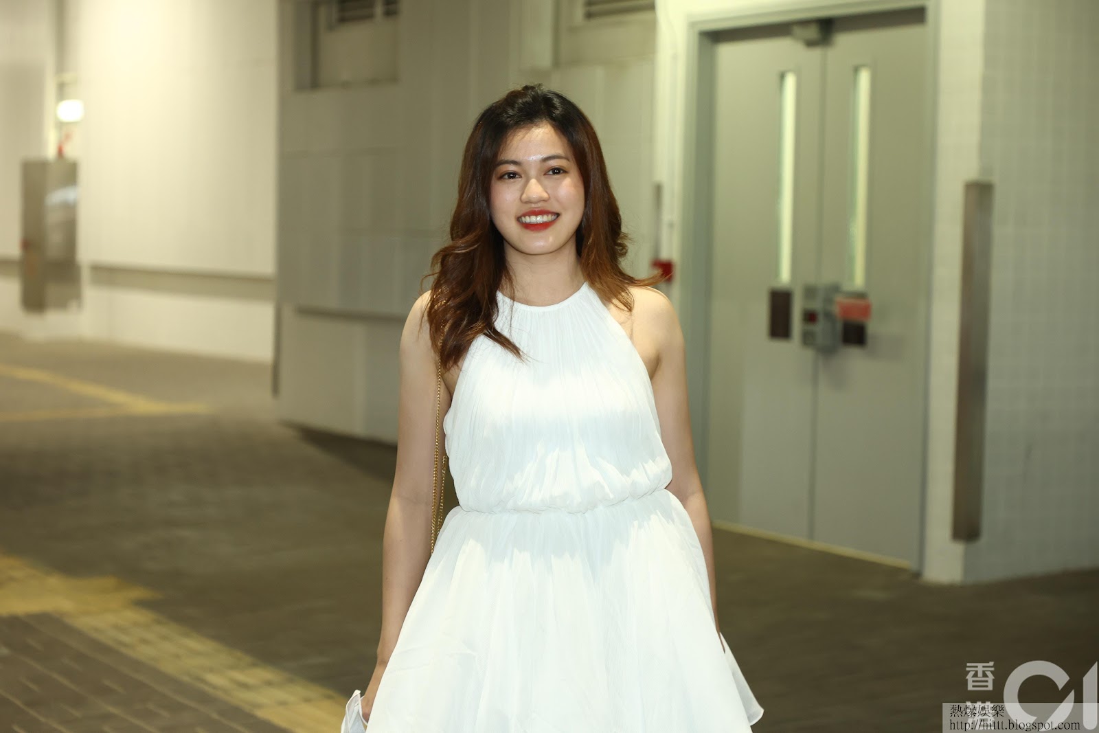 陳曉華穿着白色連身裙參加香港小姐競選首輪面試,十分符合她的氣質。(資料圖片)
