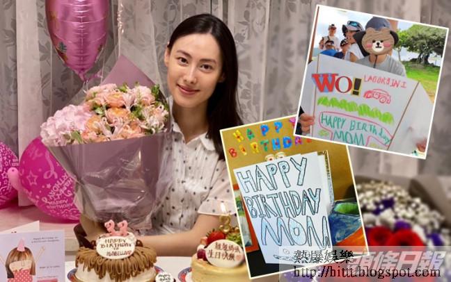 到晚上,Isabella再貼出素顏慶生照兼留言:「Thank you everyone for your lovely birthday wishes.(多謝各位的生日祝福)」相中的她手捧一束粉色鮮花,面前桌上擺放了一盤Cup cake、兩個大蛋糕與大束紅玫瑰,蛋糕上的朱古力牌還寫上「靚靚媽咪生日快樂」,未知是否3個寶貝仔夾份送的呢?其後Isabella又上載了一張手繪生日卡照,卡上大大隻字寫上「HAPPY BIRTHDAY MOM」,睇番較早前先Po完大仔李長治(Ethan)所畫的風箏.估計新Po的應該是孖仔李長亨、李長軒的畫作。