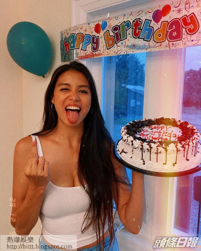 相中,見Juliette穿白色小背心露腰之餘,又以手臂大大力夾雙「峰」,34.5C巨咪即「唧」一條4吋深坑,非常火辣!難怪早前被爆「性伴侶多得驚人」的翟威廉都按耐不住派Like!壽星女心情特別好,所以知道大家咁欣賞,Juliette亦一口氣於IG Story出多幾個Po,多謝親朋戚友跟她賀壽,更以英文表示:「我哋食咗好多嘢,搞到噚晚連蛋糕都冇切,但今晚我哋同家人慶祝第二輪。」隨後仲上載了兩張穿比堅尼的Selfie,實行生日賣大包!