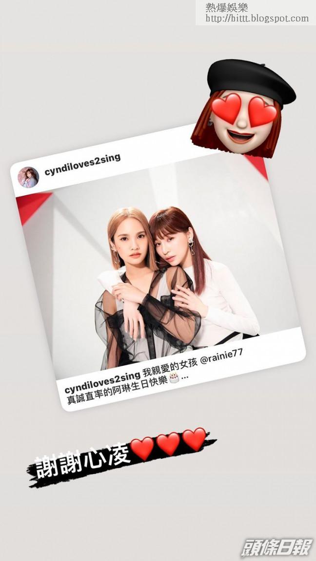 另外,好友王心凌貼上昔日合照祝賀:「我親愛的女孩,真誠直率的阿琳生日快樂,健康快樂,幸福滿滿,阿凌愛你喲」。