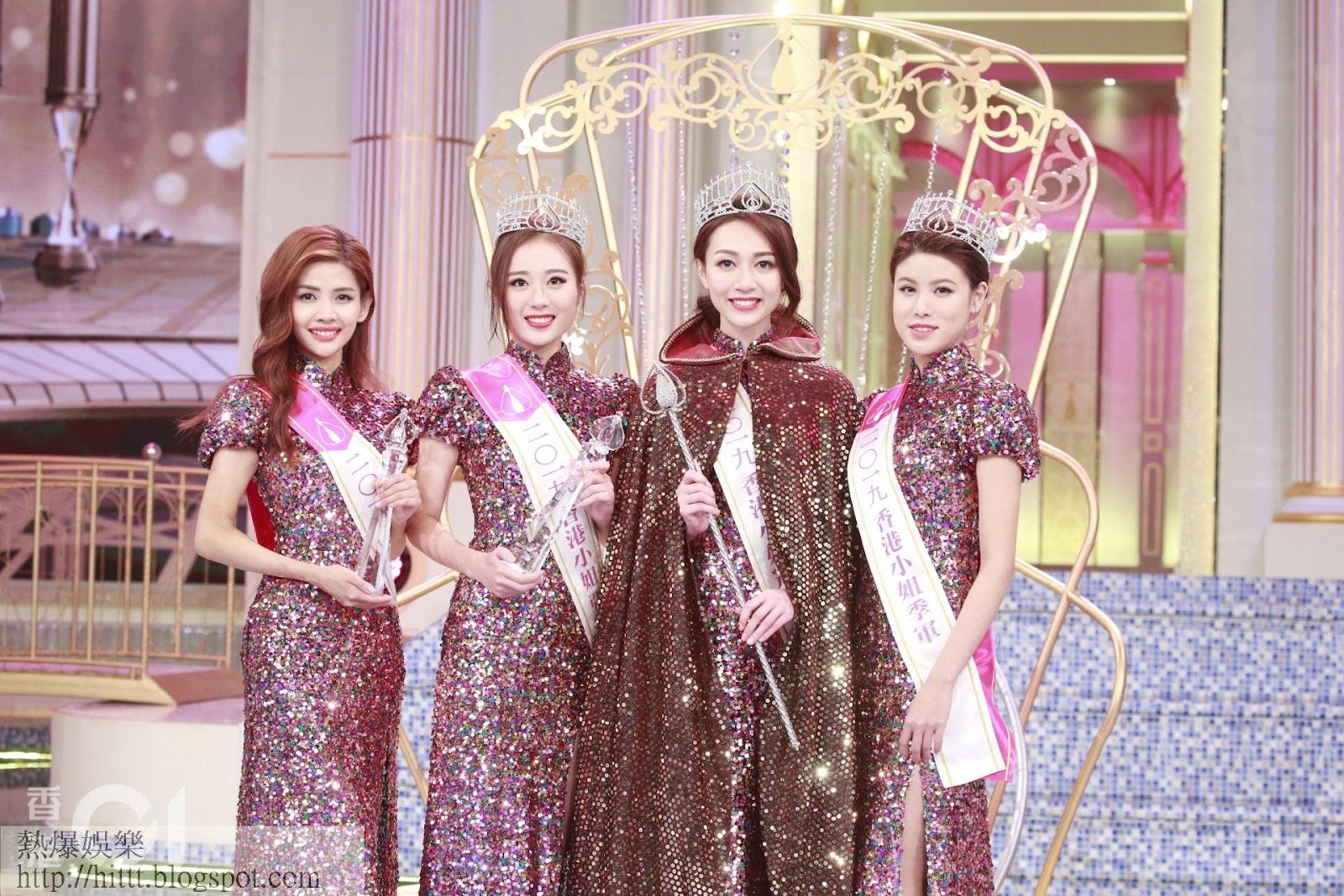 當年冠軍是朱晨麗(左二),而季軍是許亦妮(右二) ,梁麗翹(右一)則是友誼小姐。(視覺中國)