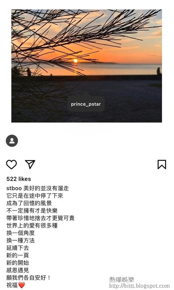 至於王子則在社交網上載香港夜景照,相信這張相片,是他們最後一次見面、在今年五月時他秘密來港時拍下的,他留言:「這段美好的相遇,會好好存放在記憶的盒子裏,千餘個日子裏的付出和貼心,也會一併珍藏進去,感謝一切的發生,都在心裏留下了印記,新的旅程,深深祝福,一切安好。」