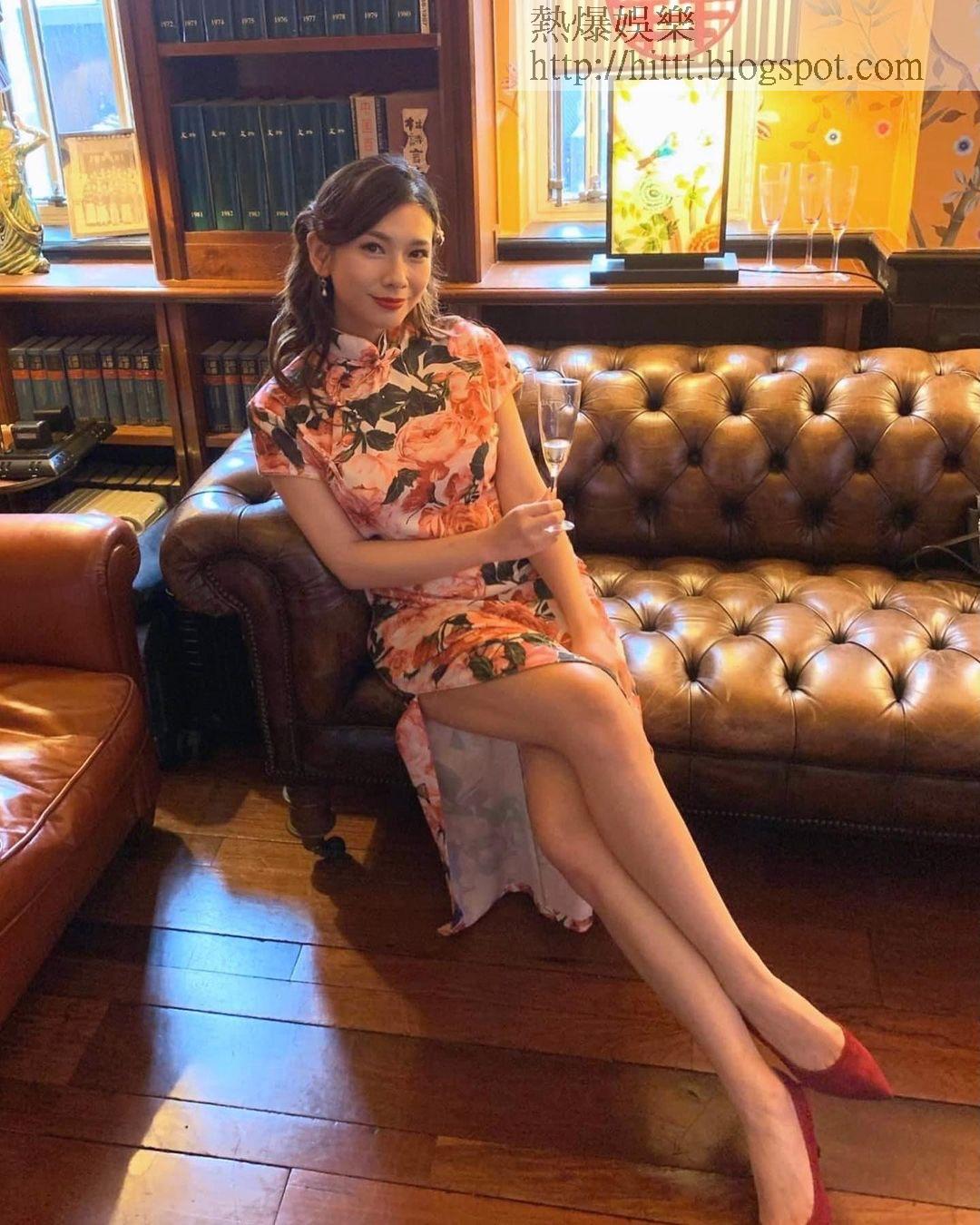 穿上旗袍的Maggie大曬修長美腿。(IG/ @maggieleung0722)