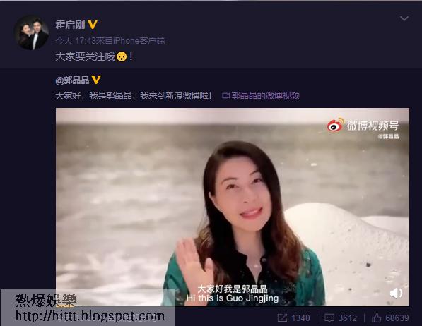 郭晶晶有新嘗試,霍啟剛當然都支持,他轉發太太的首個post,還不忘叫網民關注太太,而郭晶晶出首個post後7小時,已吸引6.6萬名網民關注。