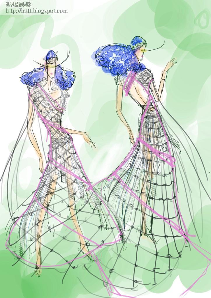 更有兩個球僮模特兒為她拉起兩邊裙擺。