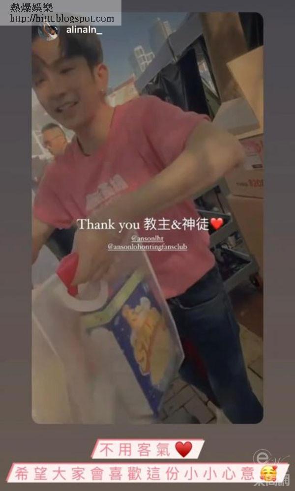 電影拍檔Alina 上載短片答謝Anson Lo,他回應:「不用客氣,希望大家喜歡這份小小心意」。