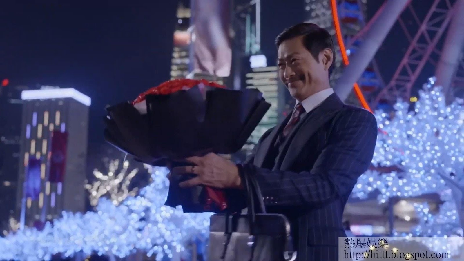 黃德斌拿着一大束玫瑰花在摩天輪下向Edan表白。(劇照)