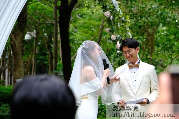 新娘子接受訪問:「本身我哋想擺30圍,每枱12位賓客,但因為疫情,所以總共擺咗10幾圍,全部要隔開晒,有啲賓客都話咗唔嚟,好似我老公嘅電台舊同事林盛斌咁,佢就話嚟唔到飲喜酒,但好畀面嚟咗觀禮,Mayanne(麥美恩)好好,拍完劇趕嚟觀禮,仲帶埋靚相機幫我影相,仲要多謝男家送咗好多金器,不過擔心會壓扁,所以我成晚唔敢郁。」