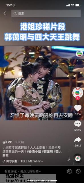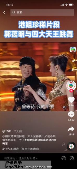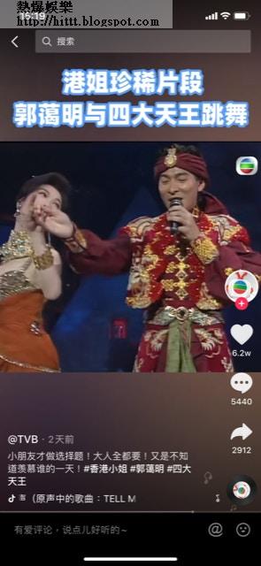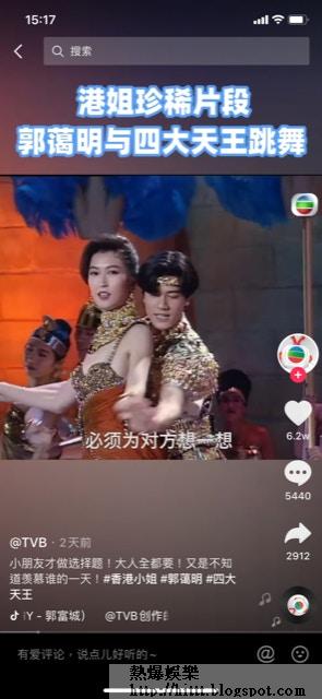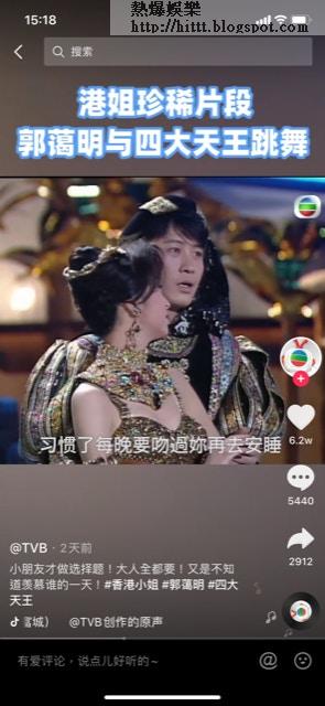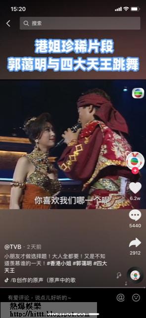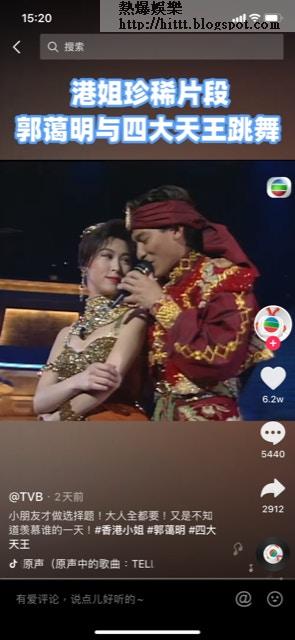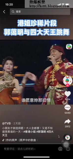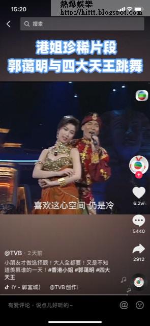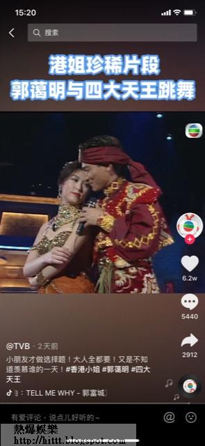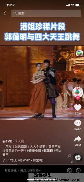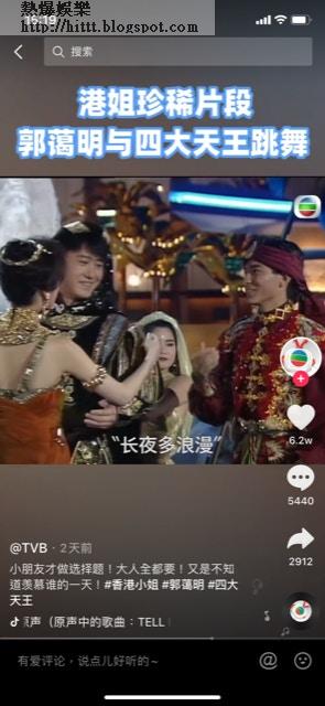 日前TVB的官方抖音帳號就post了1992年四大天王:張學友、劉德華、黎明與郭富城,齊為港姐決賽擔任表演嘉賓的片段,四人輪流與1991年港姐冠軍郭藹明跳舞。四位天王完美演繹型英帥靚正,而郭藹明亦靚到dum一聲,與他們十分匹配,在台上閃閃發光。
