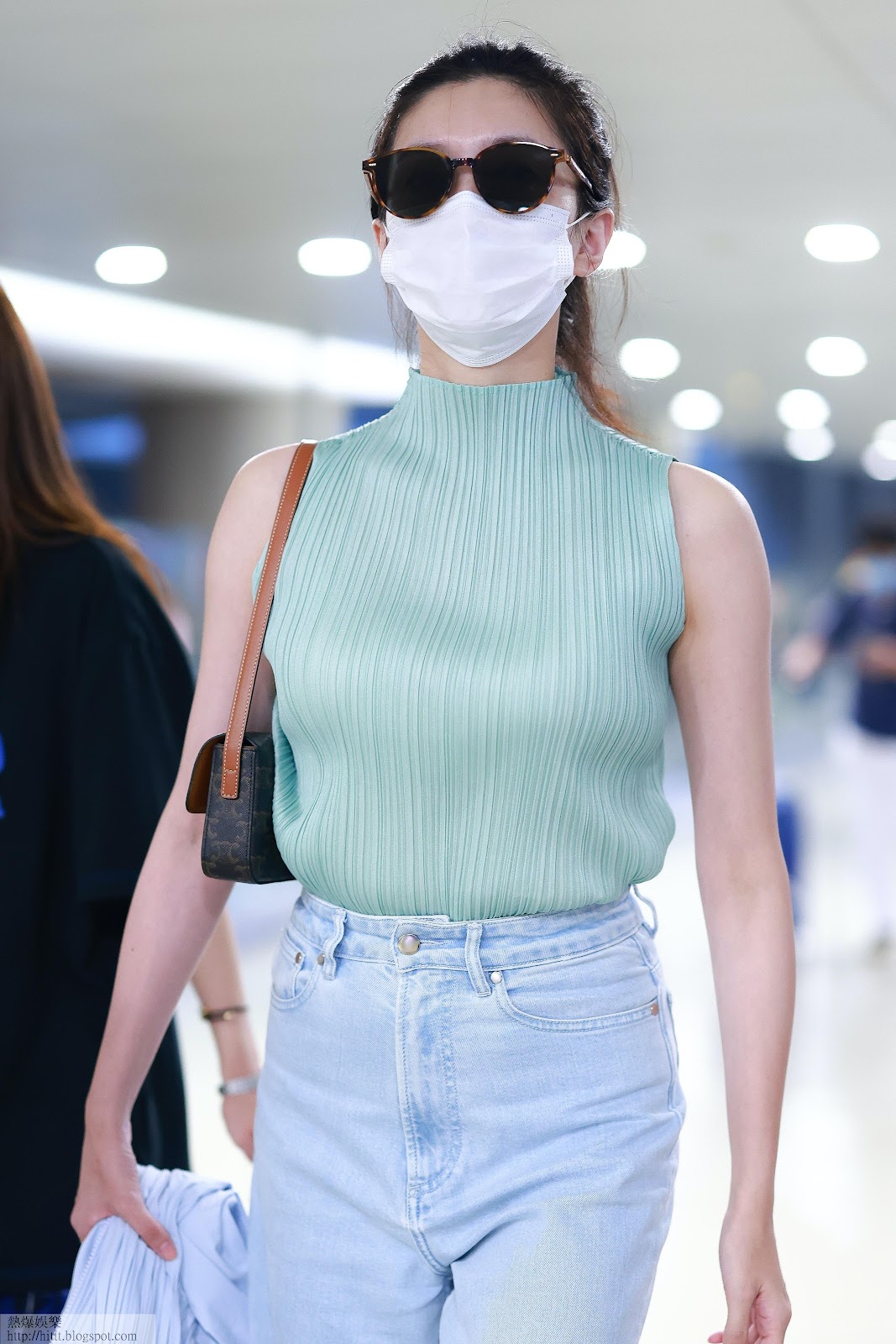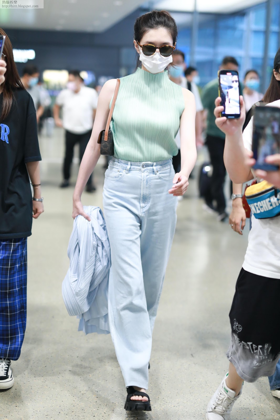 內地女星江疏影,憑電視劇《三十而已》爆紅,外貌標緻,皮膚白滑,舉手投足也充滿女人味,更被讚是完美鎖骨,而且她不止有靚樣好身材,更是上海戲劇學院表演系畢業,也曾到英國讀大學擁有碩士學位,平時Po出福利圖,已俘虜不少粉絲,近日江疏影在機場被粉絲野生捕獲,戴上墨鏡及口罩,身穿綠色無袖針織襯衣配牛仔褲,但卻不慎失手,見到腰間脹了一圈,大美女多了小胃腩,確是大煞風景。