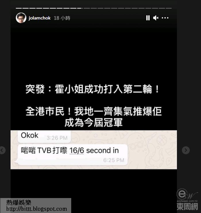 林作眼光果然獨到,昨日林作就在社交平台宣布,對方已經成功打入第二輪,他更希望全港市民,一齊集氣,「推爆佢成為今屆冠軍!」距離奪冠又近一步,有仙氣果然不同凡響!