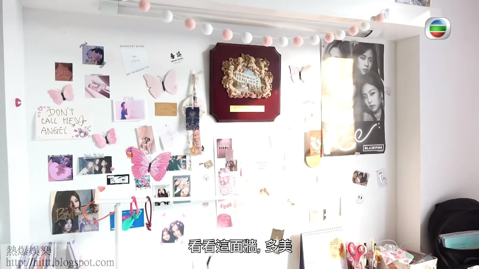 牆上亦貼滿韓國女團BLACKPINK的周邊產品,Chantel直認是BLACKPINK粉絲。(影片截圖)