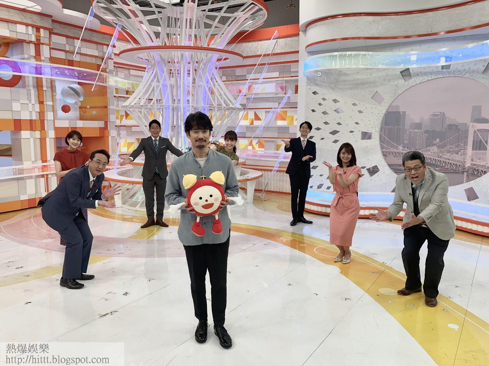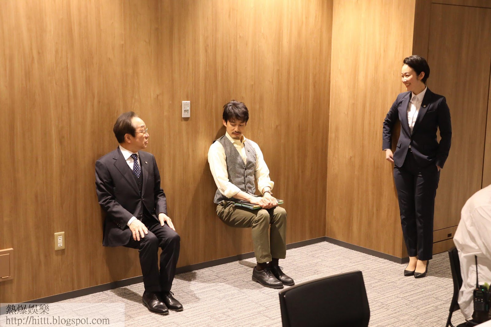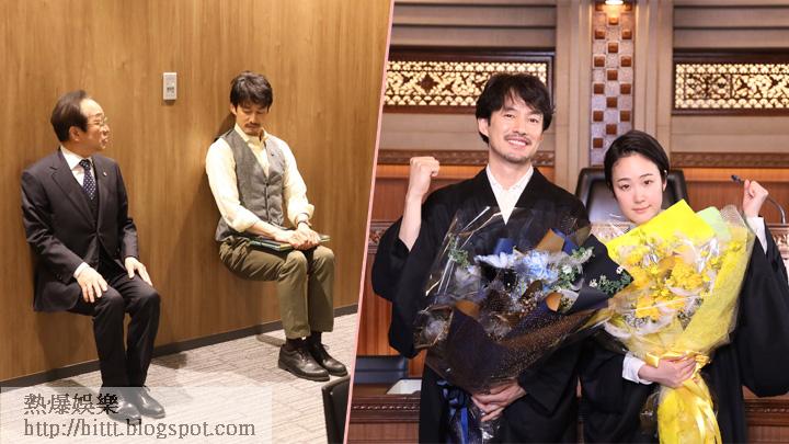 竹野內豐昨日為谷大結局,亮相富士台的早晨直播節目,而劇組昨日更公開他與拍檔小日向文世在拍攝現場坐無影凳自娛的幕後花絮,令女主角黑木華與工作人員即場爆笑。