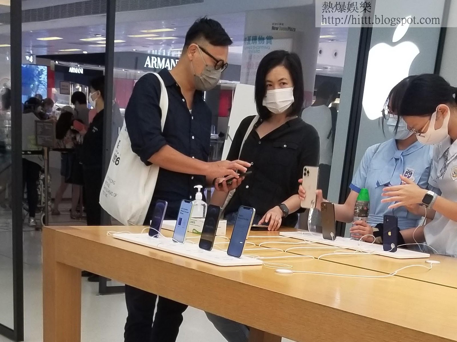 早前一同到演藝學院捧「腦細」林日曦場的蘇玉華與老公潘燦良,日前發現現身沙田蘋果店,估計應該是蘇玉華的手提電話出了問題,所以才到上址找職員幫忙。在老公陪伴下,兩人按店員指示先取籌號等候維修同事幫忙。目測雖然心急,但等候期間蘇玉華和老公仍跟蘋果店職員有講有笑。