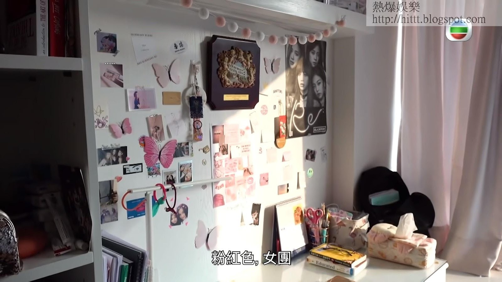 牆上亦貼滿韓國女團BLACKPINK的周邊產品,Chantel直認是BLACKPINK粉絲。(影片截圖)
