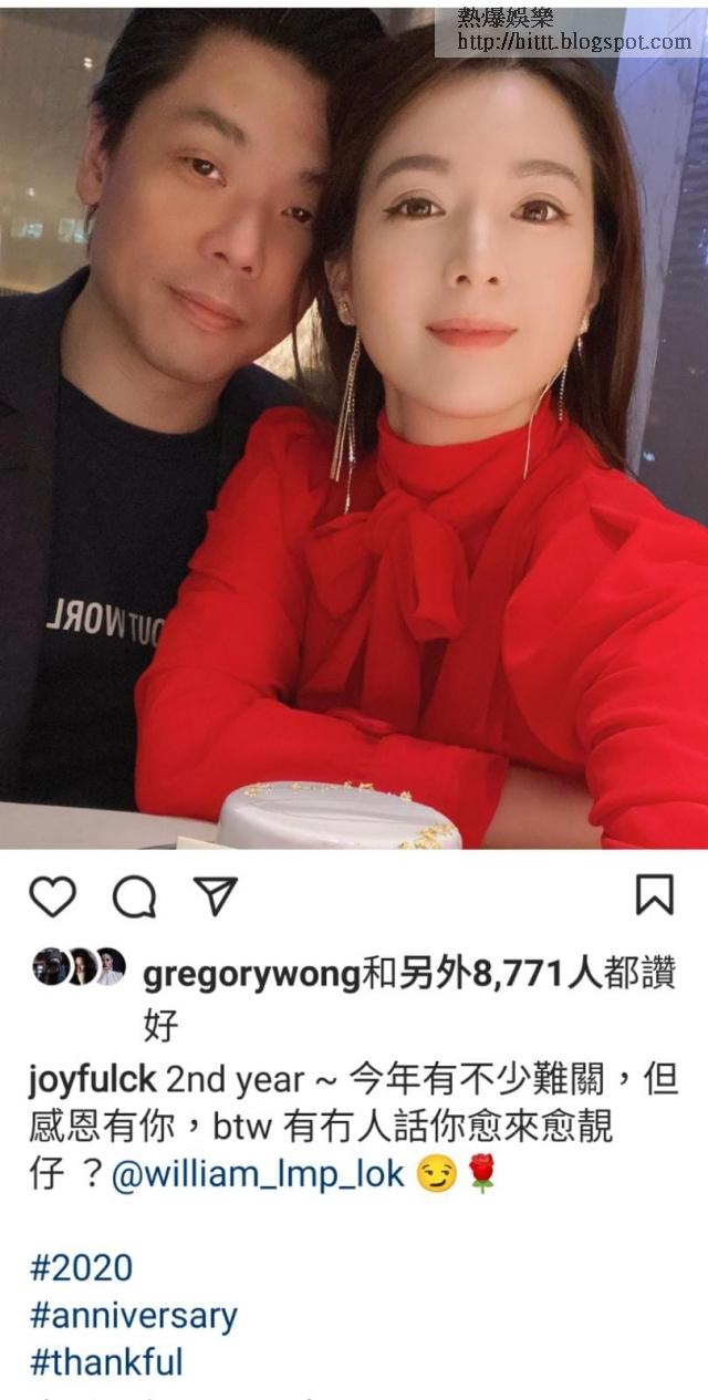 她最後一次上載跟陸漢洋的合照,已是去年10月慶祝結婚兩週年,當時她留言:「今年有不少難關,但感恩有你!」