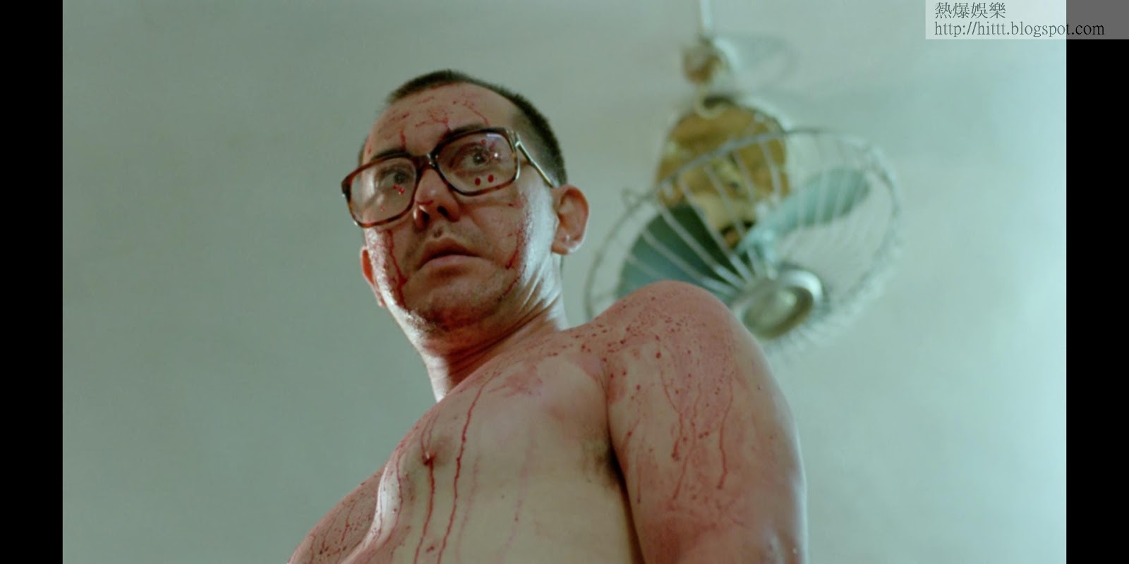《尖東梟雄》的劈友場面被喻為史上最誇張,梁家仁一行人由地下劈上頂層,每人閒閒地身中數十刀,血肉橫飛,鮮明顏色令電影別有風味。(電影截圖)