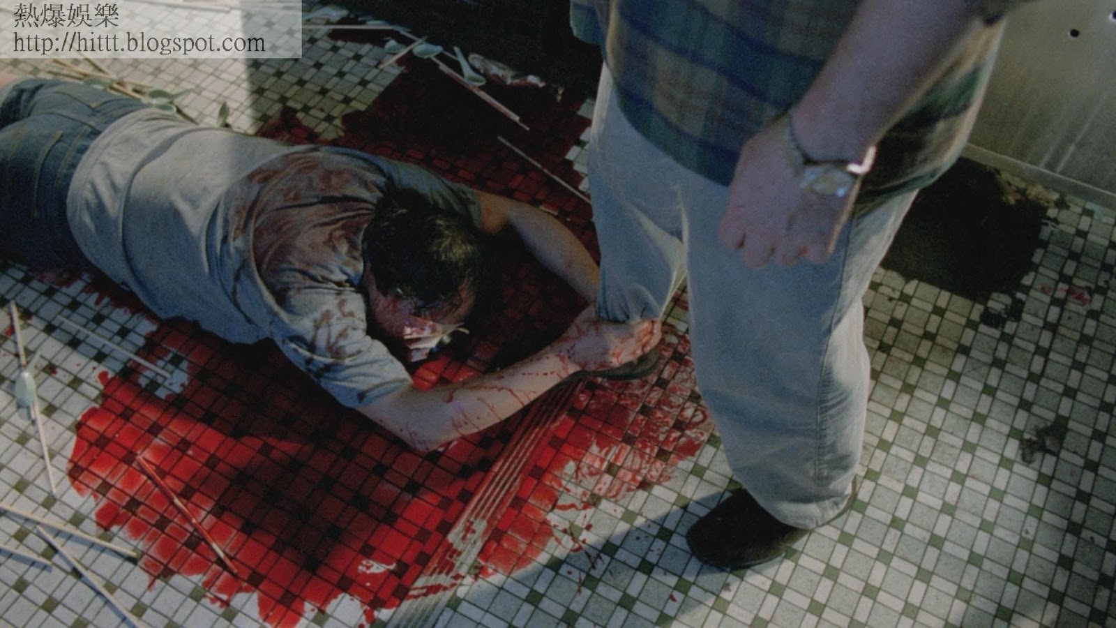 《血洗洪花亭》看到龍方毫不憐香惜玉地虐待王祖賢,之後仲有一幕長達5分鐘的劈友戲,比《古惑仔》系列震撼得多。(電影截圖)