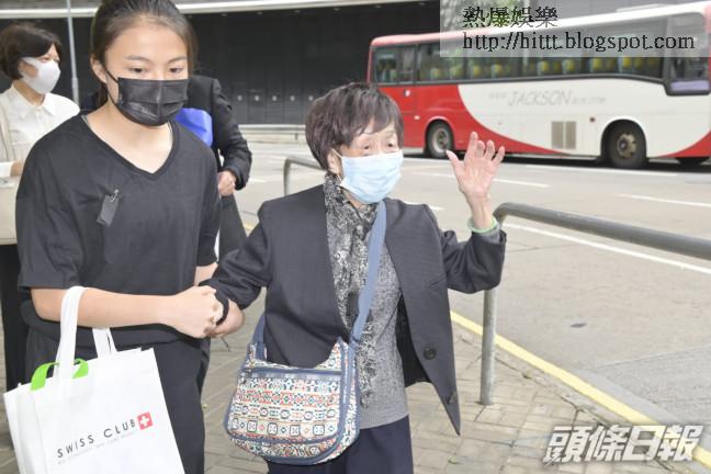 遺孀蕭湘在外傭攙扶下抵達靈堂。
