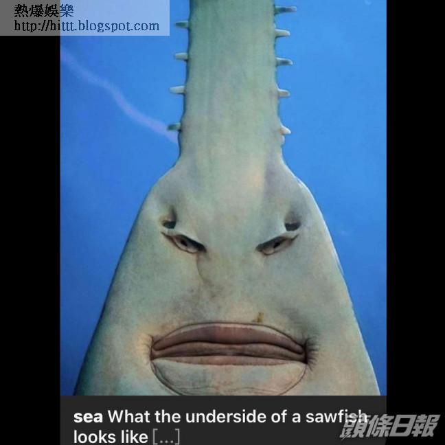 同阿占撞樣嘅係一條鋸鯊,相似度達九成,吳若希睇到大大聲笑咗出嚟,老實,真係好好笑,哈哈哈哈哈哈哈哈哈,雖然阿占只係話幾似,但佢都即刻將profic pic換咗做呢條撞樣鯊。