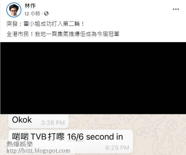 林作搶先爆霍小姐有機會參加第二輪面試。(FB截圖)