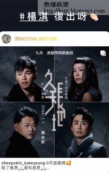已有一年多沒有演出的楊淇,早前在社交網分享舞台劇海報,還標示「楊淇復出呀」。(IG圖片)