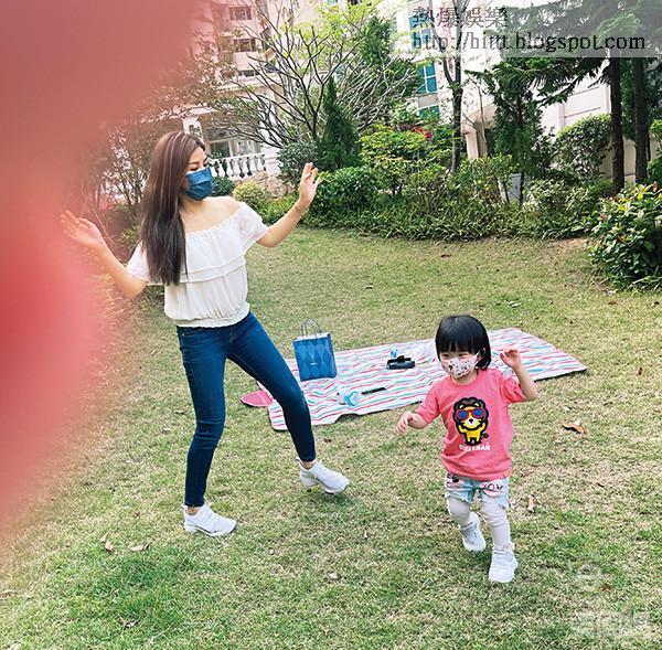 日前,本刊在大埔一個商場發現美妮兩母女的蹤影。而母愛爆棚的她,與愛女寸步不離;期間,她見到囡囡甜笑就會相當肉緊,攬到實一實。嘆完下午茶後,美妮就帶囡囡到附近的公園草地遊玩。已經兩歲的「笑咪咪」,聽到玩具播放的音樂,就手舞足蹈;而美妮見狀也技癢,親自教囡囡一招半式,令囡囡亦跳得有板有眼,一副未來「舞后」的樣子。下次無綫不妨邀請她們以母女檔上陣,娛樂大家!