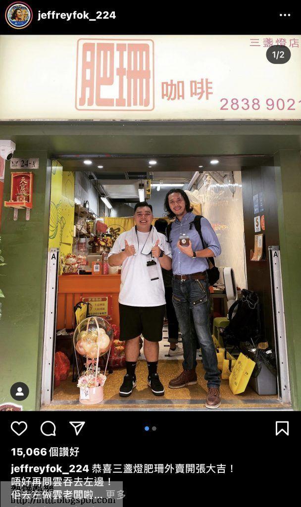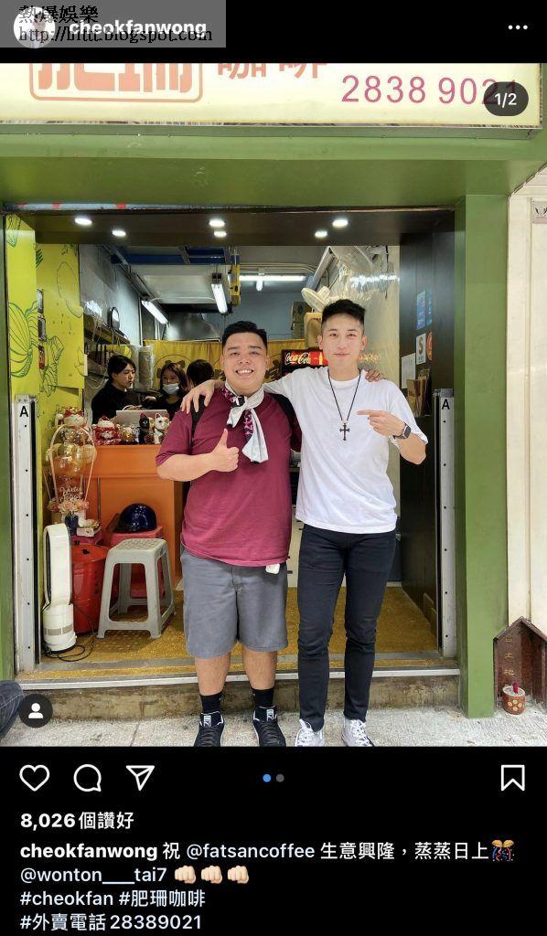 (圖片來源:肥珊咖啡)肥珊咖啡開新分店時,亦有一眾相熟微辣藝人到場祝賀雲吞,而經理人Jean亦有在個人Vlog中訪問雞Wing會否再有「雲吞叫埋雞」。