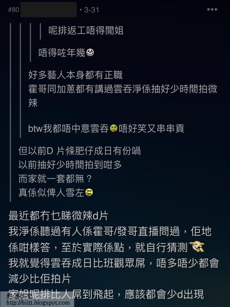 當成為公眾人物,自然要付出唔同代價,特別是Youtuber言行更備受一眾網民注目。來自澳門的網媒公司「微辣」,近年以不同風格的搞笑影片在港澳中打出名堂,旗下一眾藝人更成為生招牌。不過並非每位成品都受大眾所愛,今次就有網民在討論區中大數微辣成員「雲吞」不是。不單止演技、笑點全無,私生活更是毫不檢點,疑似「一腳踏兩船」。而且在事件後,更傳出因而「被雪」,雖然一直對外界宣稱「有正職,無乜時間拍片」。不過因為產量大減經已2年有多,而且就算出鏡都只是「無對白的背景」,令一眾網民更覺事有蹺蹊,一齊看看網民點睇!