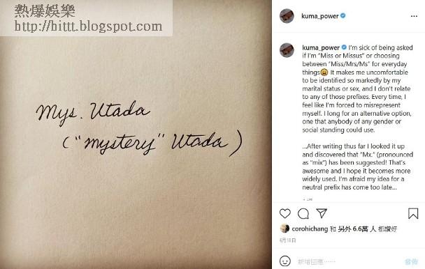 38歲日本樂壇天后宇多田光,經歷過2段失敗婚姻。現與獨生子長居於英國倫敦的她,日前在網上開Live時,坦言受夠性別框架,並宣布自己是「非二元性別者」(non-binary)。