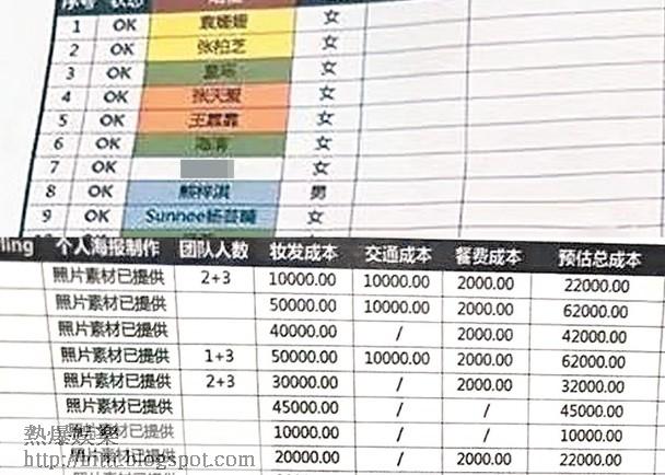 最近內地網民又爆料,上載一張包括張栢芝、張天愛、童瑤及袁姍姍等16位藝人,於5月28日在上海出席活動的要求及各項費用清單。上面清楚列明化妝髮型費用、交通費、用餐費等,單是化妝髮型費用已高達35萬元人民幣(約43萬港元)!憑內地劇《太子妃升職記》爆紅的內地女星張天愛,與張栢芝的化妝及髮型費用同為5萬元人民幣(約6萬港元);有「小章子怡」之稱、在內地劇《如懿傳》飾演「慧貴妃」的童瑤,化妝及髮型費用則為4萬元人民幣(約48,700港元);女星袁姍姍的費用較上述3位女星「貼地」,只需1萬元人民幣(約12,170港元)。