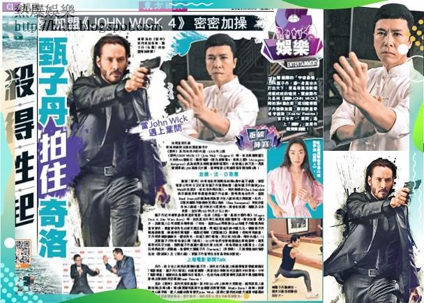 飾演「殺神」的奇洛在即將開拍的第4集中毫不寂寞,皆因電影公司昨日正式宣布甄子丹強勢加盟!據知甄子丹飾演John Wick的老朋友,彼此有共同的敵人。再次執導的Chad Stahelski表示劇組非常幸運邀得甄子丹坐鎮,期待與他合作外,監製Basil Iwanyk亦認為他將為影片注入新的活力與刺激。此外,日裔英籍歌手兼模特兒澤山璃奈(Rina Sawayama)早前亦宣布加入劇組。影片將於今夏開拍,將會在法國、德國及日本取景,並安排2022年5月27日上映。