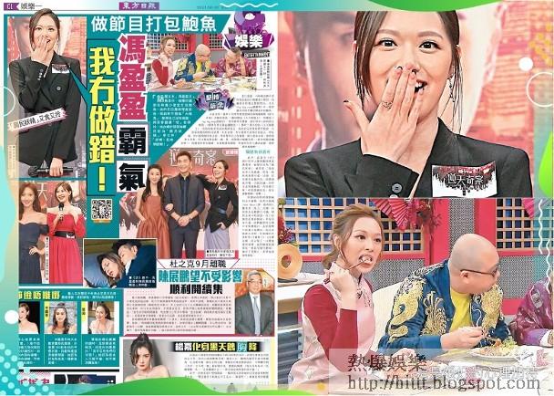 「話題女王」馮盈盈又惹是非,被爆拍攝節目時貪小便宜打包鮑魚。她昨日回應時理直氣壯,稱純粹不想做「大嘥鬼」,覺得自己沒有做錯,將來會繼續「惜」食照拎。她亦樂於接受被網民封為「國民妖精」,更大呼:「好嘢!我有稱號喇!」