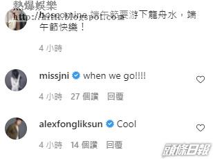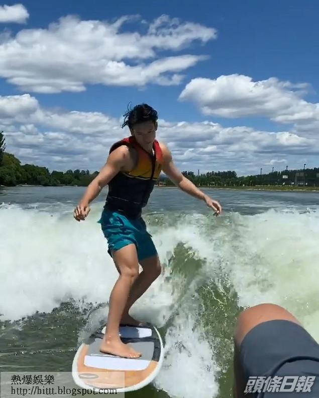 至於Bosco的滑水片段都幾Chok,更配上背景音樂,雖然技術未如Kenny純熟,但初學嚟講上到水又維持到咁耐,尚算見得吓人。Bosco表示:「端午節要游下(吓)龍舟水,端午節快樂!」仲引嚟陳瀅同方力申呢對緋聞男女留言讚好。
