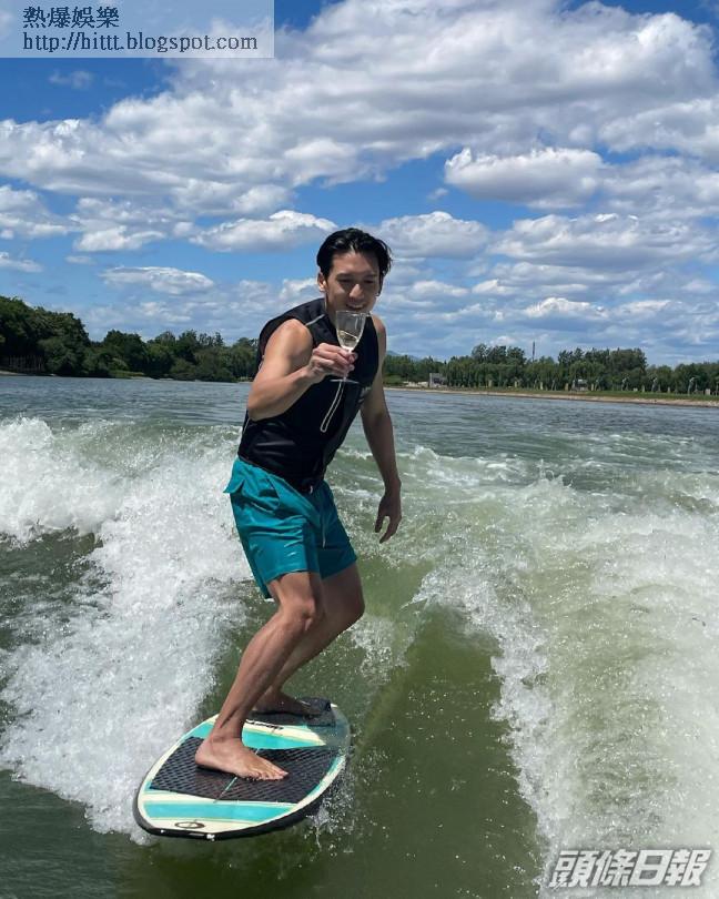 今日(14日)是端午節,不少人都去游龍舟水,無獨有偶,關智斌(Kenny)及黃宗澤(Bosco)都分別玩Wakesurf(無繩滑水)應節。Kenny在社交網上載兩段照片及影片,他一邊在湖上滑水,一邊跟隨船上播放的音樂擺動身體,非常輕鬆。不過另一片段,原本想蹲在滑板上的他最後失去平衡跌落水。Kenny留言:「無論邊度都會搵到可以 #wakesurf 嘅地方🏄🏻♂️端午節快樂!cheers 🥂 #原來湖水係幾爽 #不過船家唔准我除衫😌」,冇得騷大隻𠻹!