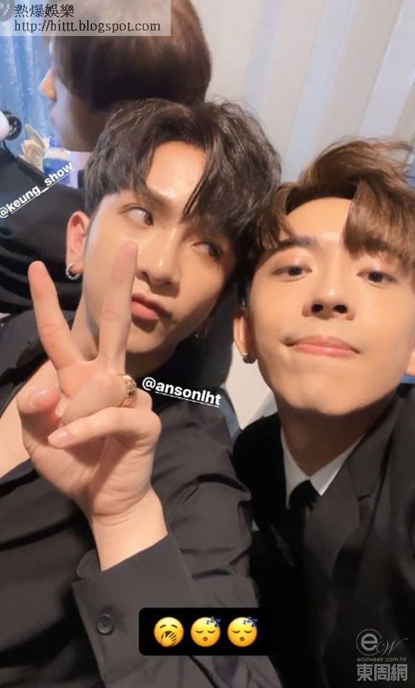 MIRROR昨晚在主題樂園通宵開工,成員Edan(呂爵安)回復「網癮少年」身份,等埋位時不忘與其他成員影相!他先後與Jeremy(李駿傑)及Anson Lo(盧瀚霆)自拍,早前Anson Lo曾呷醋表示Edan只掛住理阿Jer(柳應廷),雖然Jer冇份同Edan自拍,不過他亦上載對方着底衫扮跳芭蕾舞的短片,仲為飛釘嘅Edan加上黑色心心Emoji遮掩,好細心喎!