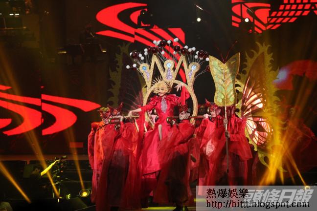 Karen其後在台上彈古箏,獻唱盧冠廷的《一生所愛》,又唱出在電影《食神》中唱過的《情與義》,有觀眾大叫她在戲中的角色「火雞姐」。唱到《幻聽》時,穿著紅衣、戴著金色面具的Karen,坐在由舞蹈員抬著的花轎上,有氣勢之餘也帶點詭異。在encore環節,Karen以「網球女神裝」唱出《呼吸有害》,她指這首歌得到樂壇大滿貫的成績,故設計師特別將網球元素融入晚裝之中,更將裙尾設計成球網,很有心思。