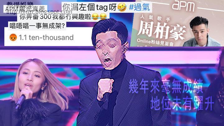 「高峯上不成」,原來周柏豪唱人亦都唱自己。周柏豪原訂下周二(8日)舉行久違了的online fans見面會,合作商場apm上星期開始在facebook為活動宣傳,稱呼周柏豪為「人氣歌手」,又落tag「男神」,而周柏豪facebook專頁差不多時間都有同一宣傳。原本活動谷fans消費及換取與偶像對話機會,可惜想像與現實有太多落差,真心fans留言僅小貓兩三隻,甚至難得地有大陸fans以簡體字留言,其餘大部份人湧入派嬲,覺得商場搵錯合作對象兼趕客,形容周柏豪已過氣,又懷疑「北上撈唔掂咩?有冇叻哥撐場?」建議他再唱《一事無成》應一應景。