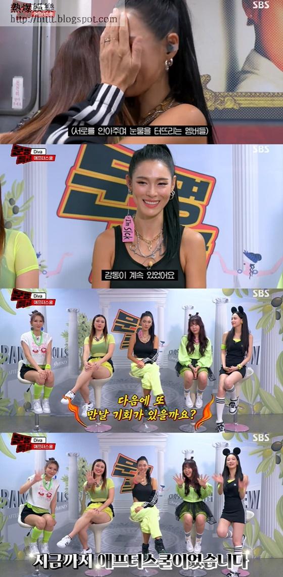 YouTube頻道《文明特急》昨晚播出特輯,邀得不少偶像組合演出表演舊歌,當中After School的嘉熙、正雅、Bekah、珠妍及Raina相隔多年合體在幕前現身,立即勾起fans回憶,引起網民熱議。五人落力表演出道曲《Diva》及人氣曲《Bang!》,當中正懷孕5個月的正雅,亦一同又唱又跳,力證眾人實力依舊,兩段演出影片的點擊率極速過百萬。