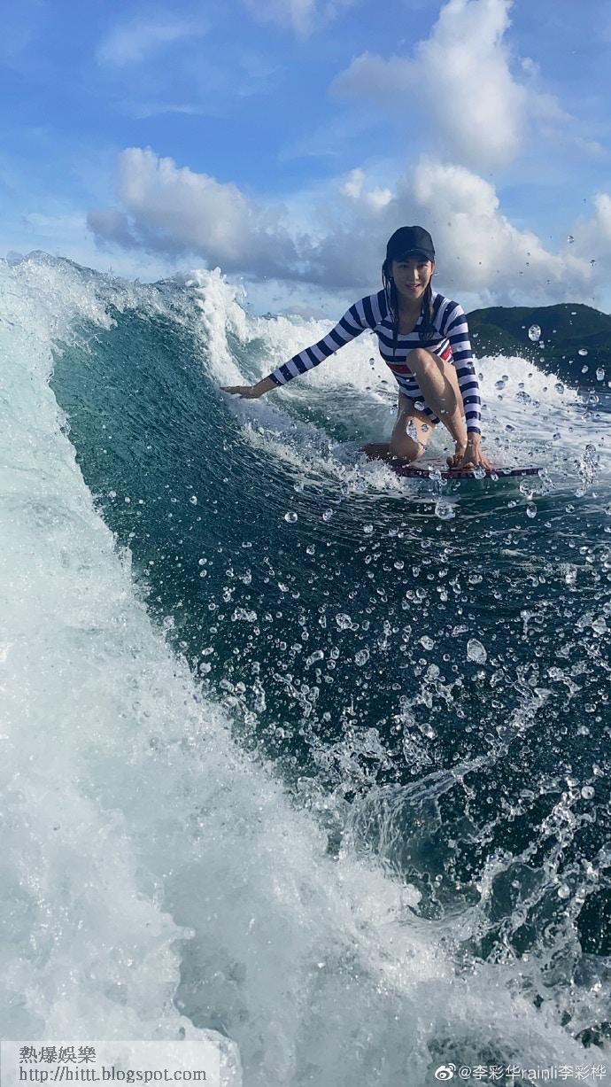 鍾意滑水。(微博@李彩華)